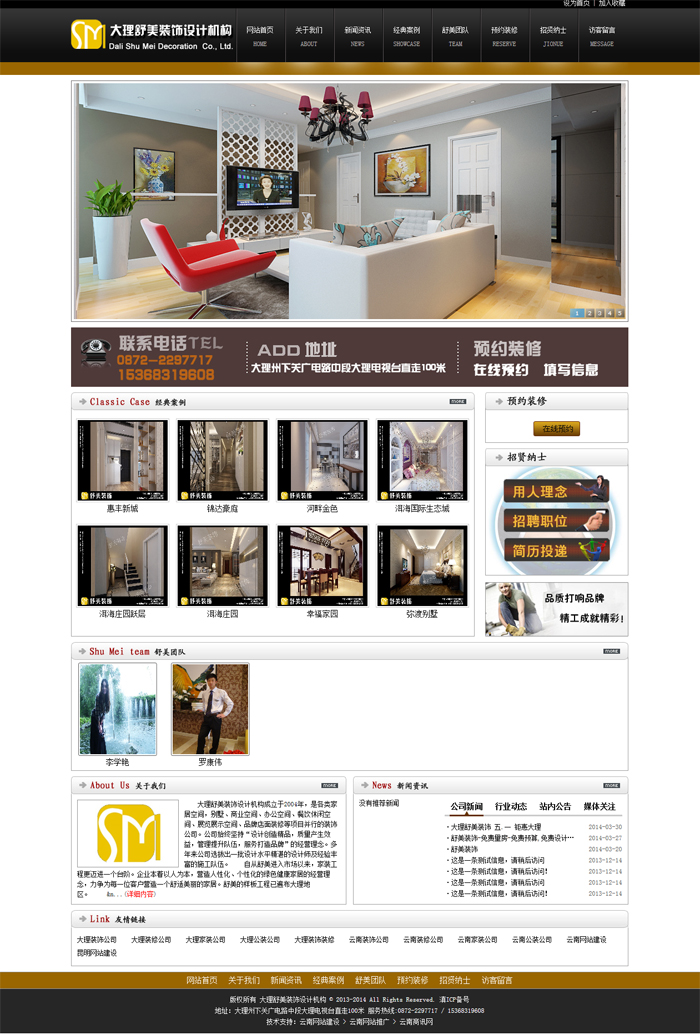 大理舒美裝飾設(shè)計機構(gòu)成立于2004年,是各類家居空間,別墅、商業(yè)空間、辦公空間、餐飲休閑空間、展覽展示空間、品牌店面裝修等項目并行的裝飾公司。公司始終堅持“設(shè)計創(chuàng)造精品,質(zhì)量產(chǎn)生效益,管理提升隊伍,服務(wù)打造品牌”的經(jīng)營理念。多年來公司選拔出一批設(shè)計水平精湛的設(shè)計師及經(jīng)驗豐富的施工隊伍。